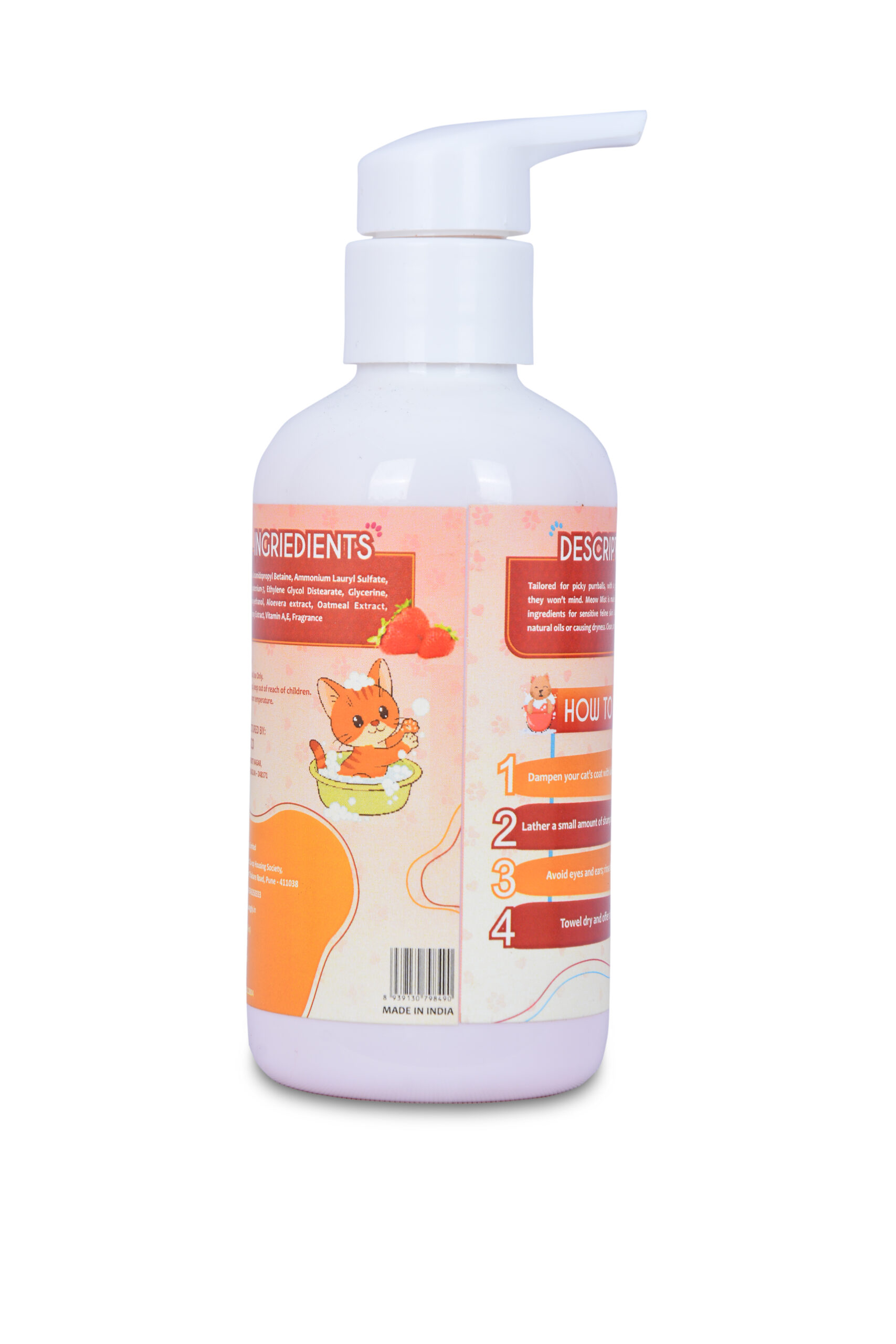 Meow Mist is made with mild, pH-balanced ingredients for sensitive feline skin.