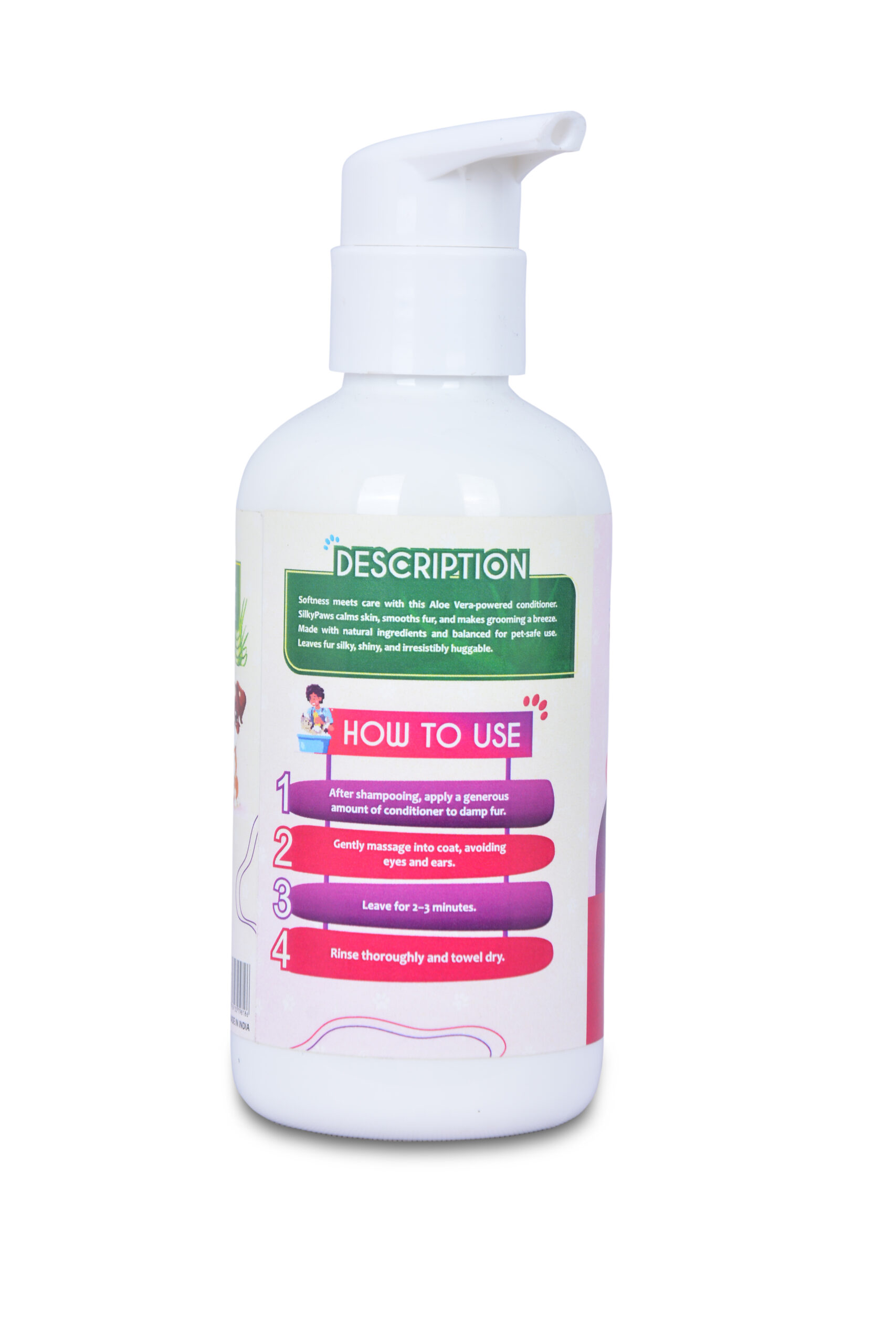 SilkyPaws calms skin, smooths fur, and makes grooming a breeze.